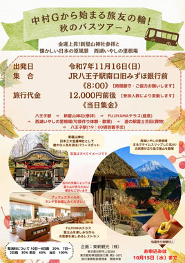私たちは東新観光(株)に務めている友人の力を借りて観光バスを貸し切り、「中村Gから始まる旅友の輪」と言うタイトルで、バス旅を年2・3回行って居ます。
